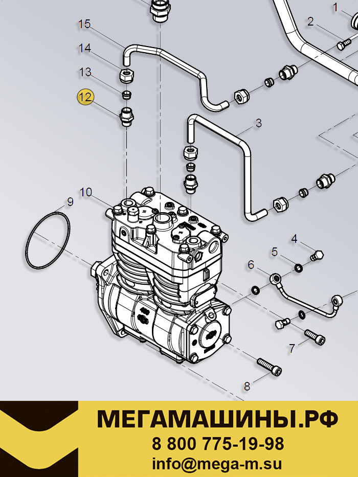 Штуцер (прямой) воздушного компрессора SHACMAN WP12 / WP13 1000879941S /Оригинал